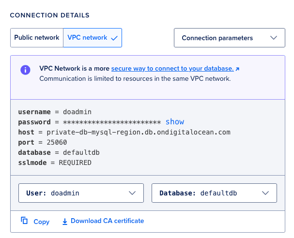 port: 25060 # port used my DigitalOcean's managed MySQL